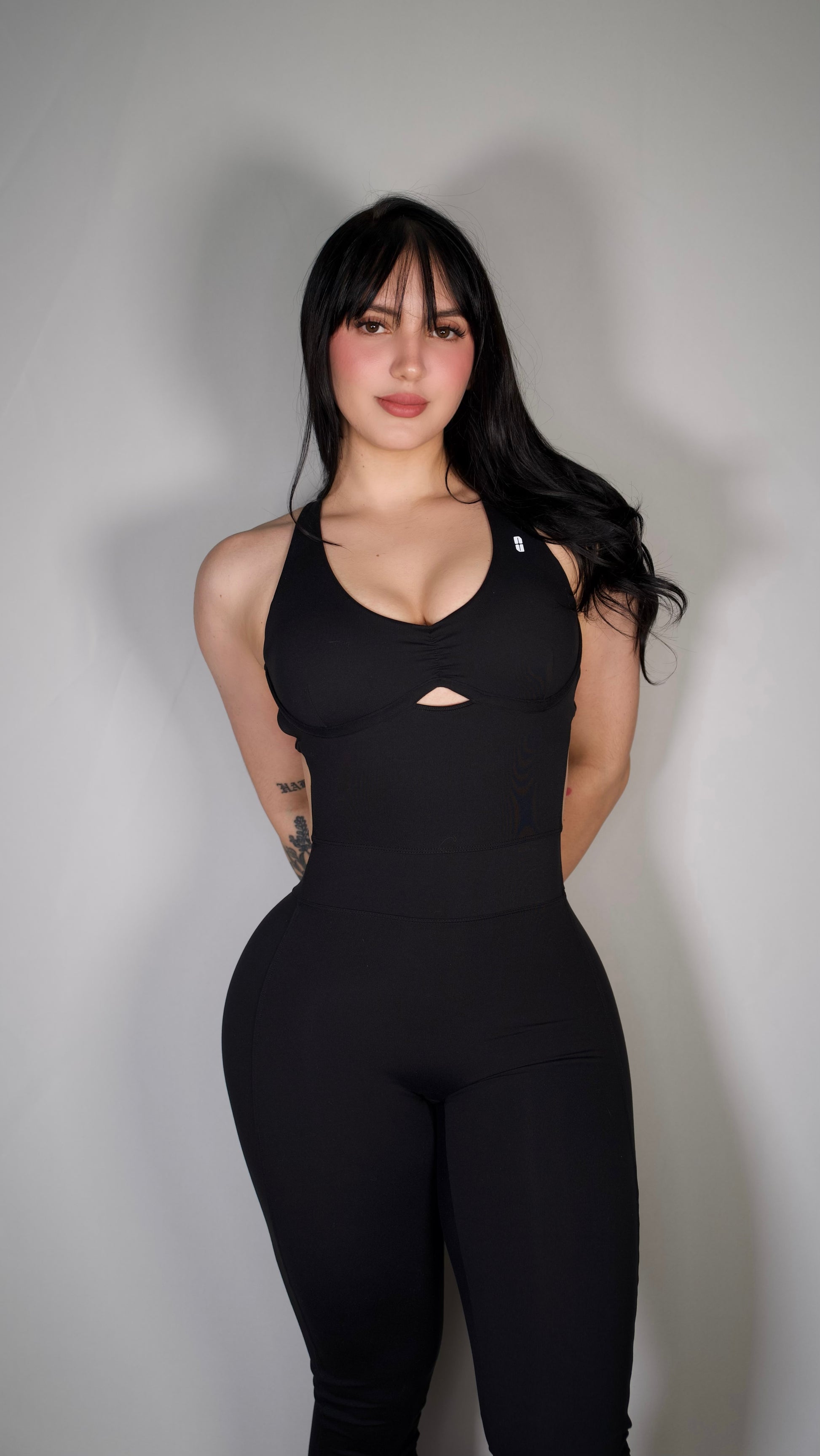 Elevate your workout wardrobe with the Rizzback jumpsuit, a sophisticated one-piece designed for performance and style. Featuring an exposed back with dual cross straps, this piece delivers a bold aesthetic while maintaining structural support. Crafted from premium stretch fabric, it adapts seamlessly to your body's movement, providing comfort during intense training sessions or casual athleisure moments. The streamlined silhouette flatters your frame while allowing complete freedom of motion, making it an essential addition for those who refuse to compromise between functionality and fashion-forward design.